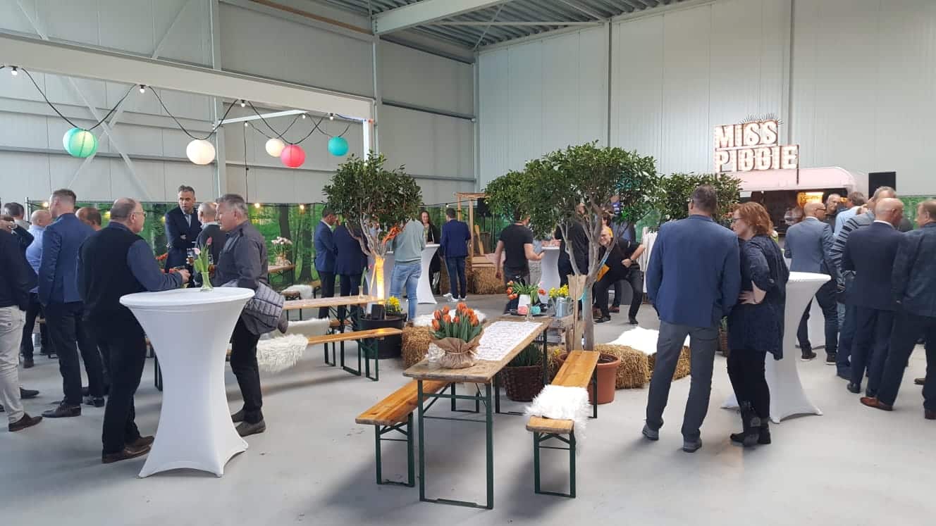 We hadden de beschikking over een net opgeleverde bedrijfsunit. Een mooie uitdaging: de unit was helemaal casco opgeleverd. De radartjes in ons hoofd gingen al toeren maken: we moeten zorgen dat er stroom is voor de verlichting en de catering, stromend water voor de bar, toiletten, verwarming (het kan begin april toch nog best fris zijn), et cetera. Ook moest gedacht worden aan geluid en muziek. Tijdens het evenement was er ruimte voor diverse sprekers vanuit de Rabobank en gemeente.